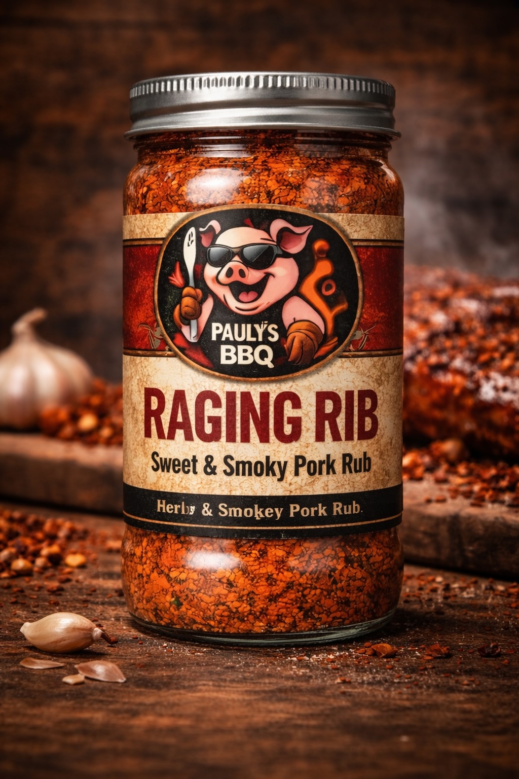 Pauly’s BBQ – Raging Rib Rub is your go-to for pork when you want big flavour, deep colour, and that sticky, smoky finish. It’s a sweet-and-savory blend that lays down a rich bark, then hits with warm BBQ spices, garlic and pepper to keep it balanced — not candy-sweet. Perfect for ribs and pulled pork, it caramelises beautifully on the smoker and plays unreal with a glaze or finishing sauce.